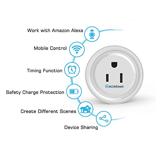 Wireless Switch Plug On Off Outlet eLinkSmart Mini Wi-Fi Socket with Timing Function Remote Control via SmartPhone Works with Amazon Alexa No Hub Required