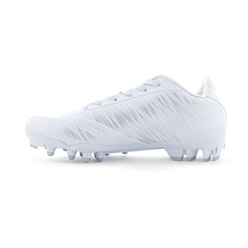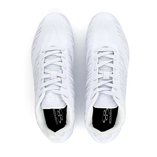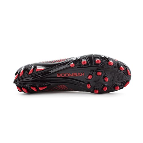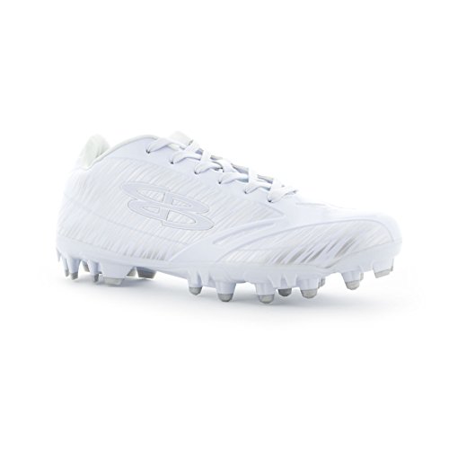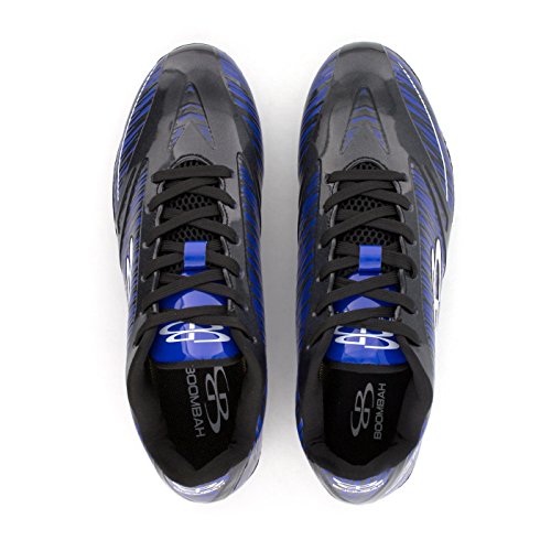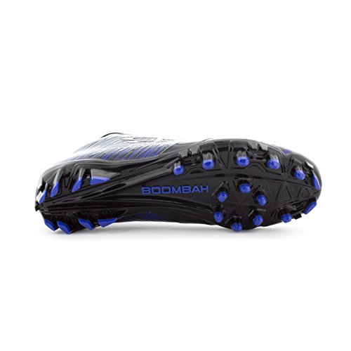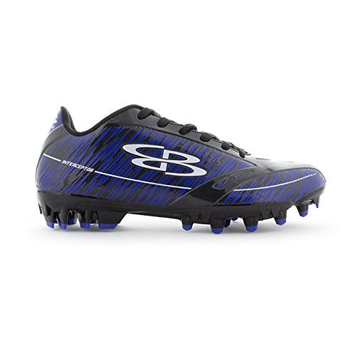 Studio : Boombah Publisher : Boombah Binding : Misc. Product Description Boombah Men's Interceptor Molded Football Cleats - Multiple Color Options - Multiple Sizes Whether you are in extreme pursuit of the ball or the extreme pursuit of your opponent, Interceptor Molded Cleats are the right tool for the job. This cleat is built for position players who require extreme speed, motion control, and durable performance in any condition. Key features include: - Galaxy PU laminated upper material is lightweight, durable, exible, non porous, and has a flashy metal flake finish - Double reinforcements in the key areas of pressure during intense direction change - Snug collar opening in conjunction with textured lining material will hold the foot secure and provide a good lockdown to the footbed - Properly curved heel pocket will cup the heel and hold the shoe to the foot to minimize heel lift and blistering - Reinforced nylon lasting board will reduce cleat pressure and provide a more accurate motion control - Insole cushion features higher density foam in the heel for greater shock absorption - Power Plant - High density TPU chassis construction in conjunction with the pivot ring cleat configuration provides explosive angular motion in any direction - Pebax Torsion Bar - Pebax shank ridges are co-olded through the heel and shank to provide chassis stability and motion control - Shovel Cleats - Wedge shaped cleats lining the sidewall to provide traction during extreme angular engagement with the playing field - Fits true to size. 9.5 oz