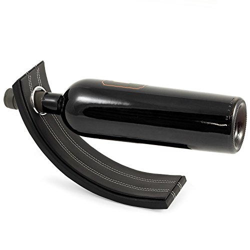 Bey-Berk Leather Balancing Wine Bottle Stand, Black