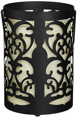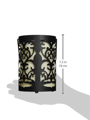 -. Feature : Dark lantern with bisque color flameless candle, made of weather resistant resin for use indoors and out / Use the timer feature and the candle will stay on for 5 hours, off for 19 hours / 4-Inch by 5-1/2-inch lantern with 3-inch by 4-inch melted-edge pillar candle / Uses 3 AAA batteries; Batteries are included / Flame free, smoke free, and worry free candles let you enjoy the ambiance of candlelight safely