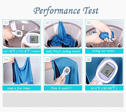 INSTANT COOLING RELIEF. WuJi cooling towel is made of Hyper-evaporative breathable microfiber mesh fabric, if you just soak, wring out and snap, it will become a chilling towel in a second, and the cooling effect will last up to several hours and you can easily reactivate it by repeating the same steps.