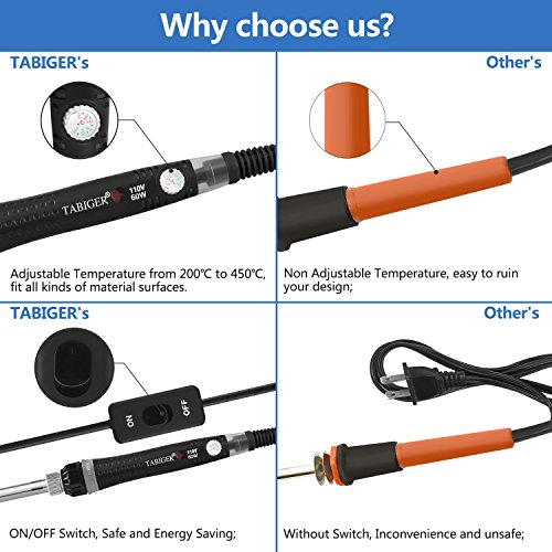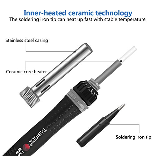 - 【Upgraded Heating technology】Tabiger 110V 60w soldering iron heats up very fast with inner-heated ceramic induction technology, which greatly improves your work efficiency.