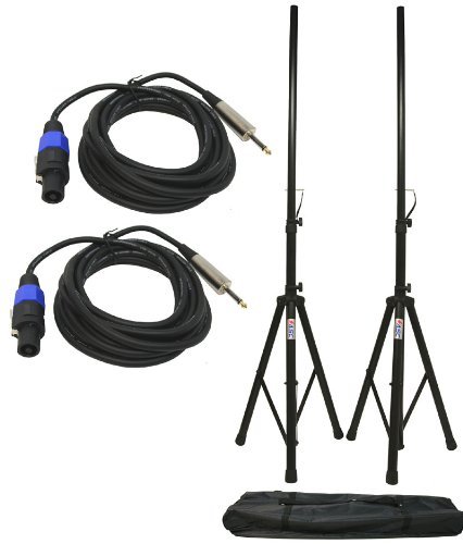 ASC (2) Pro Audio Mobile DJ PA Speaker Stands 6 Foot Adjustable Height Tripod with (2) Speakon to 1/4" 15Ft Cables & Nylon Travel Bag
