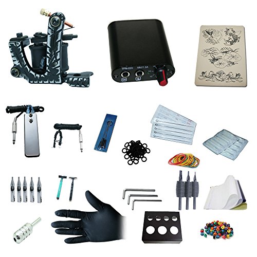 -. Title : Complete Tattoo Kit 1 Machine Gun Mini Power Supply Needles Tips Grips Tube