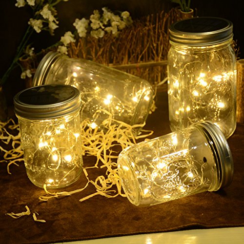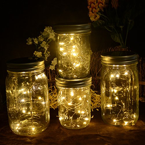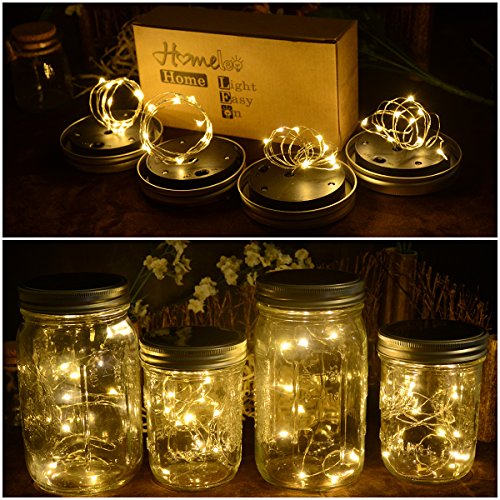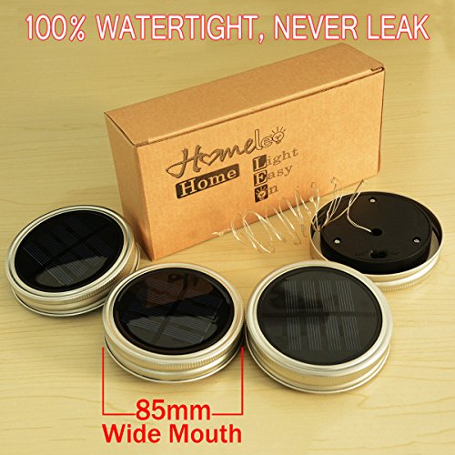 Homeleo 4 Pack WIDE MOUTH Mason Jar Solar LED Lights Insert Screw, Warm White Waterproof Solar Fairy Lights for Outdoor Garden Decor Christmas Holiday Wedding Party(Jars NOT included)