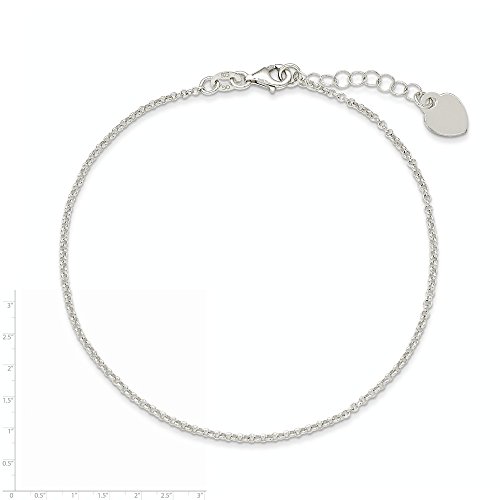 Sterling Silver Polished Heart w/ 1in ext. Anklet