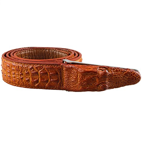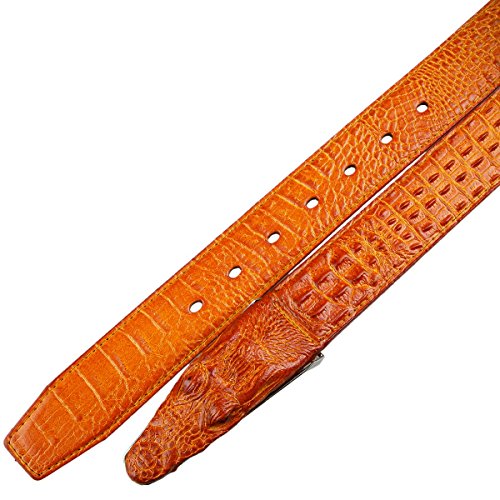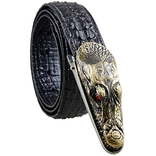 Note: Leather Belt with Awesome Embossed Alligator Buckle,perfect for outdoor.Easy adjustable buckle allows you to adjust the belt to your ideal size!