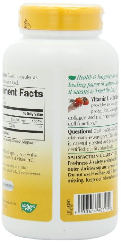 -. Binding : Health and Beauty -. Brand : Nature's Way -. Department : Health and Beauty>Health and Wellness -. EAN : 0033674403112 -. Feature : Nature's Way -. IsAdultProduct : 0 -. IsAutographed : 0 -. IsMemorabilia : 0 -. Label : Nature's Way -. LegalDisclaimer : * These statements have not been evaluated by the Food and Drug Administration. This product is not intended to diagnose, treat, cure or prevent any disease. ** Always refer to the manufacturer's label on the product for description, recommended dose and precautions. -. Manufacturer : Nature's Way -. Model : 40311 -. MPN : 40311 -. NumberOfItems : 1 -. PackageQuantity : 1 -. PartNumber : 40311 -. ProductGroup : Health and Beauty -. ProductTypeName : HEALTH_PERSONAL_CARE -. Publisher : Nature's Way -. ReleaseDate : 2010-05-13 -. Size : 250 -. Studio : Nature's Way -. Title : Nature's Way Vitamin C 500 with Rose Hips, 250 Capsules -. UPC : 336744031124