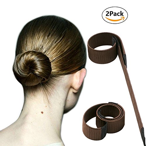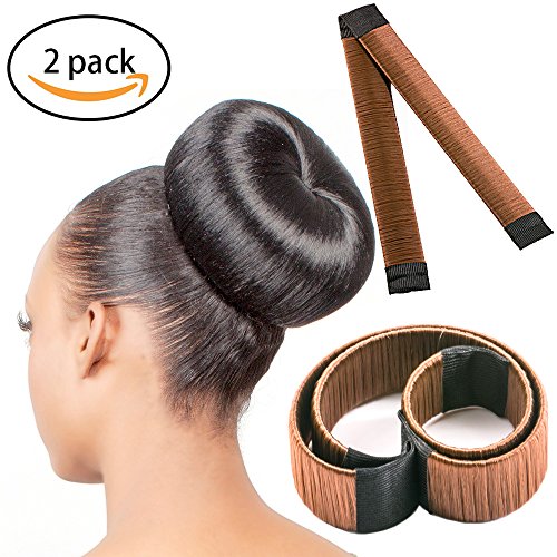 Hair Bun Maker ,MMTX 2 PCS DIY Styling Donut Former Foam French Twist Magic tool Reddish brown