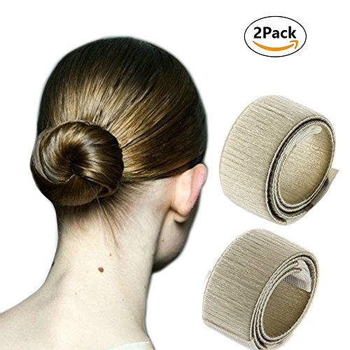 Hair Bun Maker,MMTX 2 PCS Gril DIY Styling Donut Former Foam French Twist Magic tool Golden