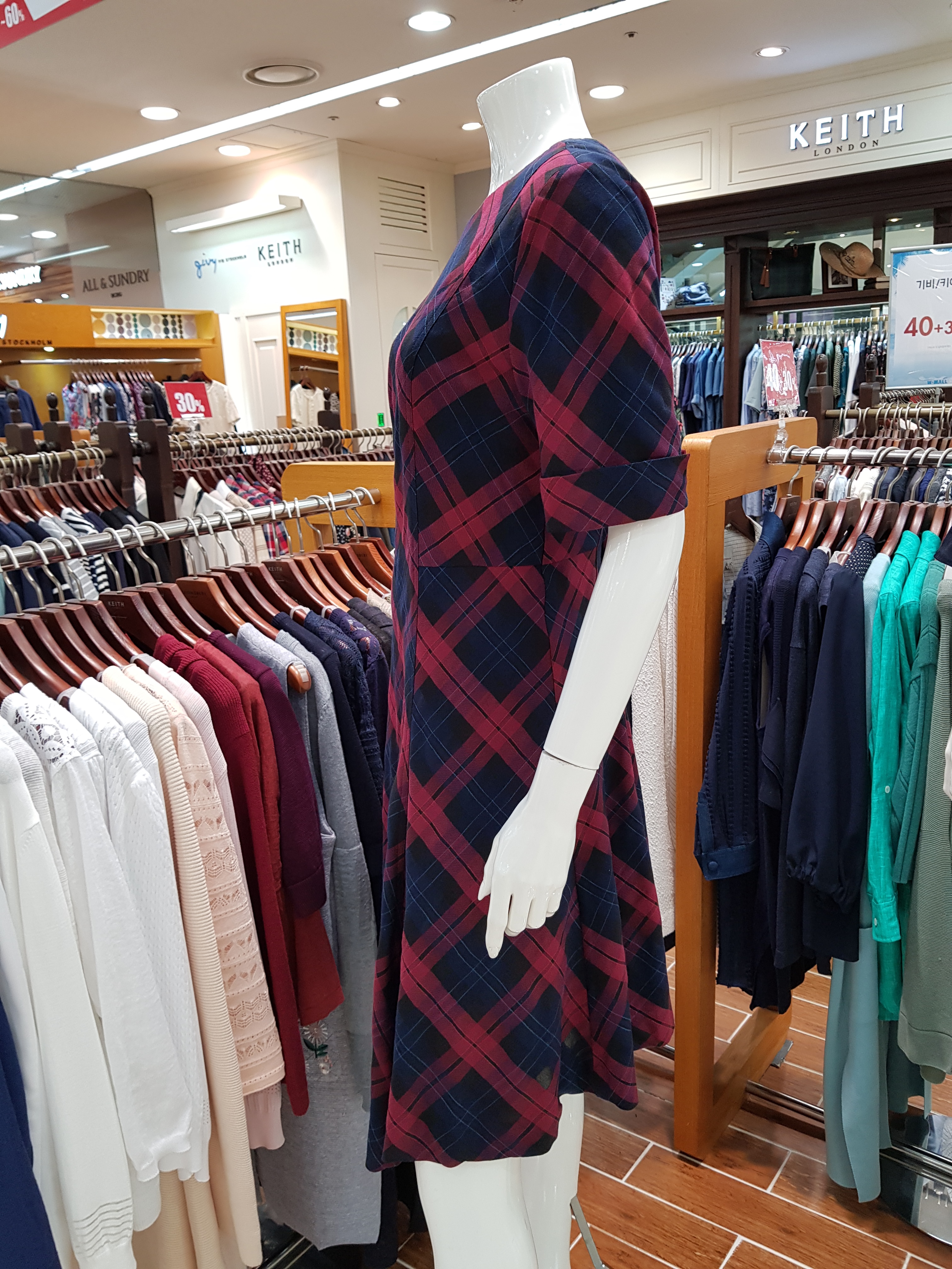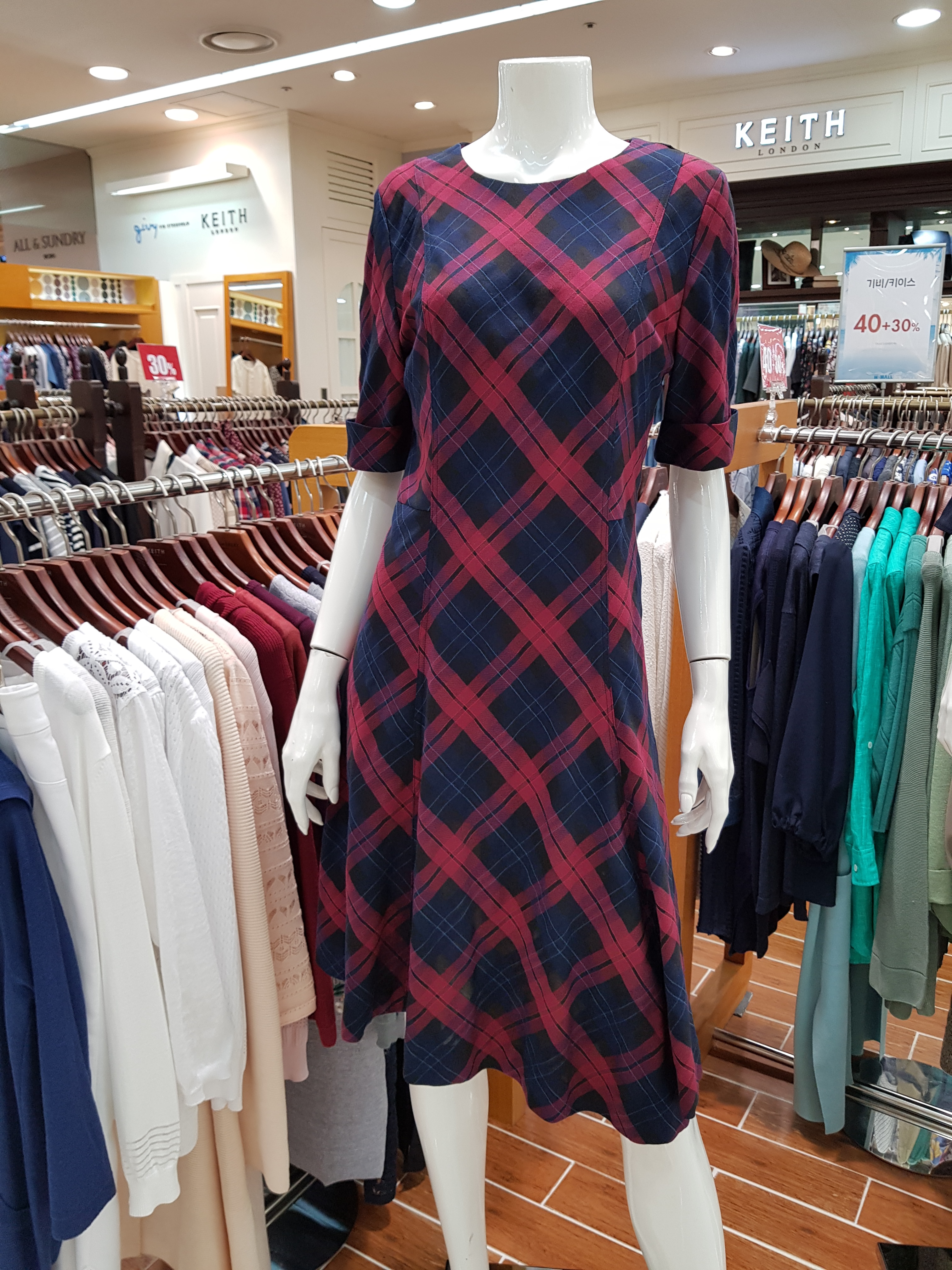 블룸스버리~고급스러운 타탄체크 원피스입니다 라인이 슬림해 날씬해보이고 신축성이좋아 활동적이며 플레어의 여성스러움이 예쁜 아이템입니다 총장91센티입니다
