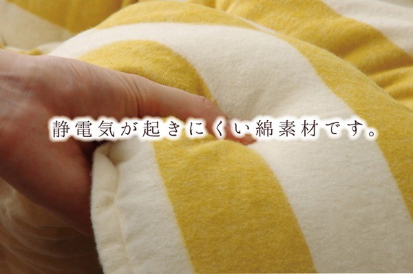 生地にインド綿を使用したこたつ布団です。デザインはお部屋のテイストを選ばず飽きのこないナチュラル&ベーシックをテーマにしたデザインです。インド産の綿は繊維が太く、引っ掛かりや摩擦に強く耐久性に優れています。ざっくりとした生地は肌触り、通気性が良く、ベトつかないサラッとした手触りが特徴です。また、綿素材はポリエステル素材に比べ、冬場気になる静電気も起こりにくくなっています。部分暖房のコタツは電気代もおトクです。