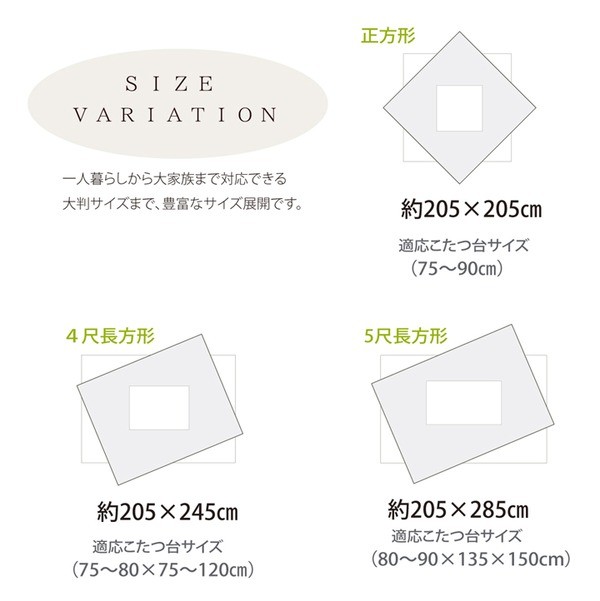 【適応サイズ】75~90cm角のこたつ台に適応
