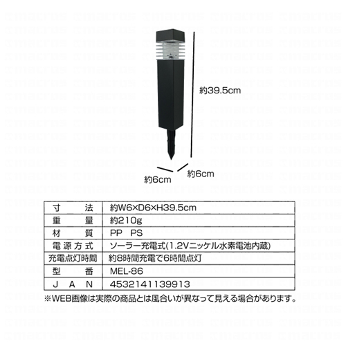 ●電源方式:ソーラー充電式(1.2Vニッケル水素電池内蔵)