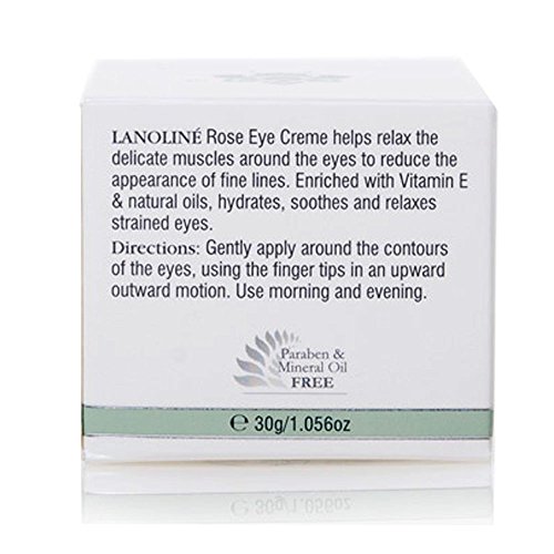 Lanoline Rose Eye creme helps relax the delicate muscles around the eyes to reduce the appearance of fine lines. Enriched with vitamin # & natural oils, hydrates, soothes and relaxes strained eyes.Feature