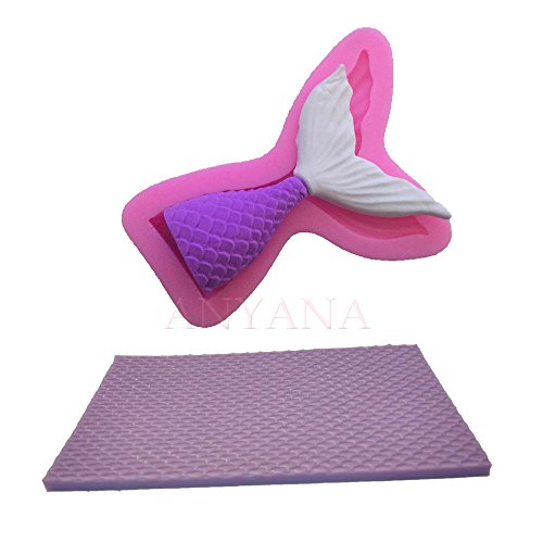 - Materials:Platinum Silicone, Mermaid Tail size:9.5x7x1.5cm weight:51grams,Lace Mat Mermaid Fish Scale size:6x5.8x2.8cm weight:57grams, Anyana Mermaid Tail mold Fish Scale Silicone Mould Fondant impression mat Cake Cupcake Decorating Tools sugar Baking Gum Paste Chocolate Candy set of 2