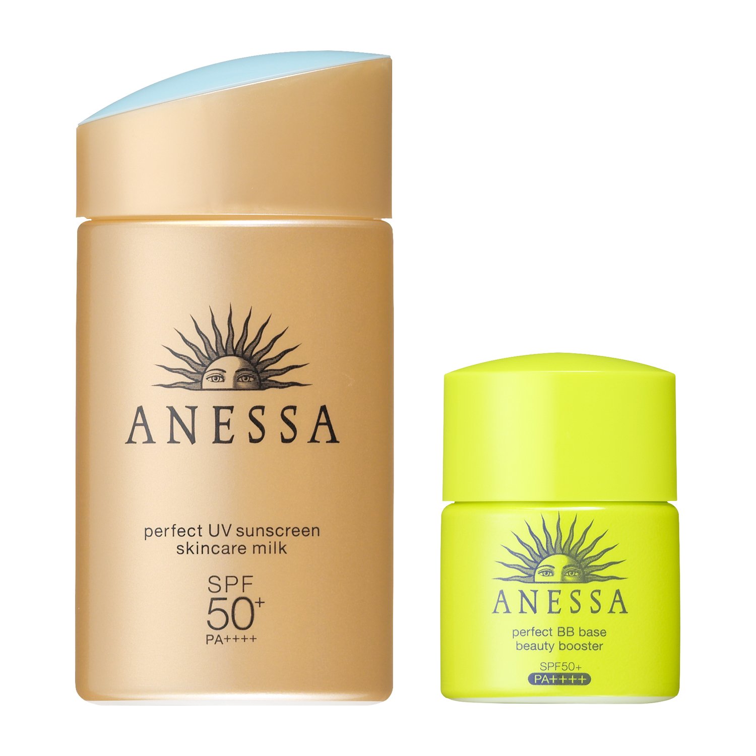 スキンケア成分50%配合。 汗・水にふれるとさらに強くなる。最強*UV。 「アクアブースターEX」搭載の顔・からだ用日焼け止め。石けんでスルリと落とせます。 80分間にわたる水浴テストで耐水性を確認済みのスーパーウォータープルーフ。 今だけ、化粧下地にも使える美肌BBミニサイズが付いたお得なセット。 *「最強」とはSPF50+・PA++++、及びアネッサ内ウォータプルーフ効果を意味します。 [セット内容] ・パーフェクトUV スキンケアミルク [日やけ止め用乳液] 60mL SPF50+・PA++++ スーパーウォータープルーフ ・パーフェクト BBベース ビューティーブースター(ライト)ミニサイズ[化粧下地] 7.5mL SPF50+・PA++++