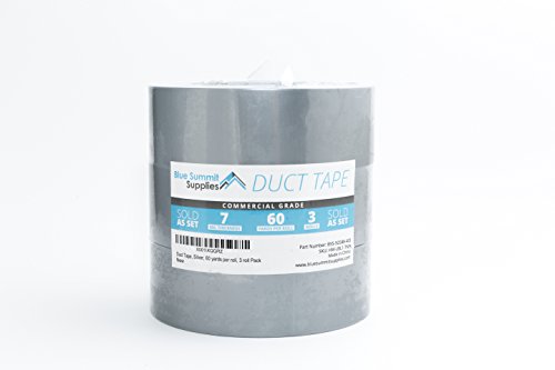 3 Pack Duct Tape, tear by hand design, silver, strong 7.3mil thickness, designed for home and office use with commercial grade strength, 60 Yard Length, 180 Total Yards