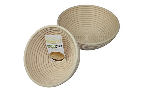 Round Banneton Bread Proofing Basket by Market Avenue | 2pc set: 8.5in and 7in Rattan Bread Baskets | Brotform for baking homemade artisan bread | Handmade Bread Proofing Bowl good for storing bread