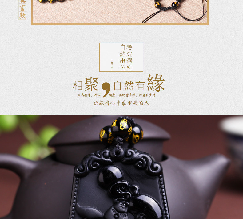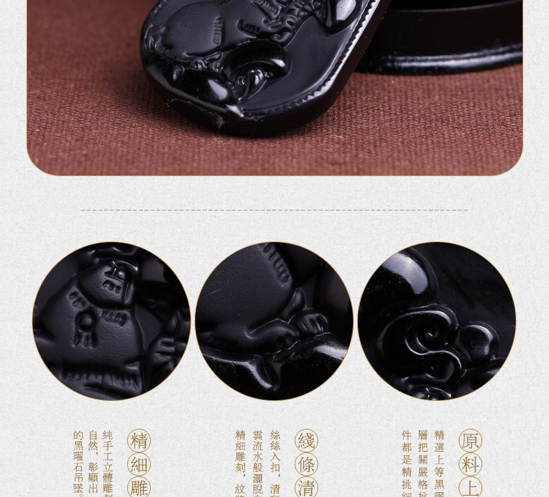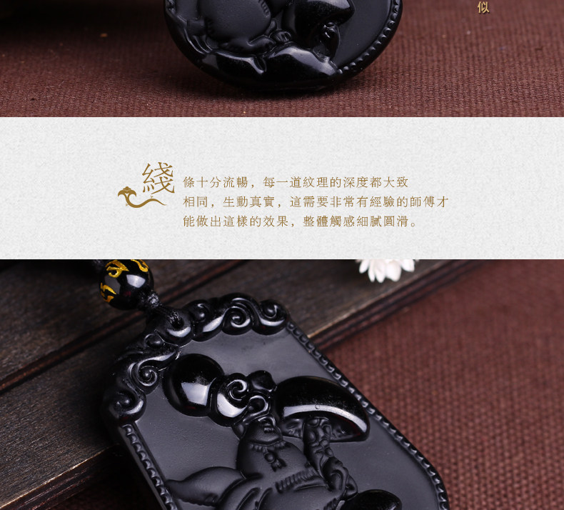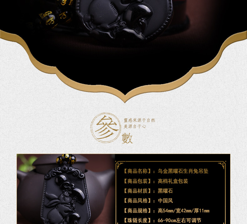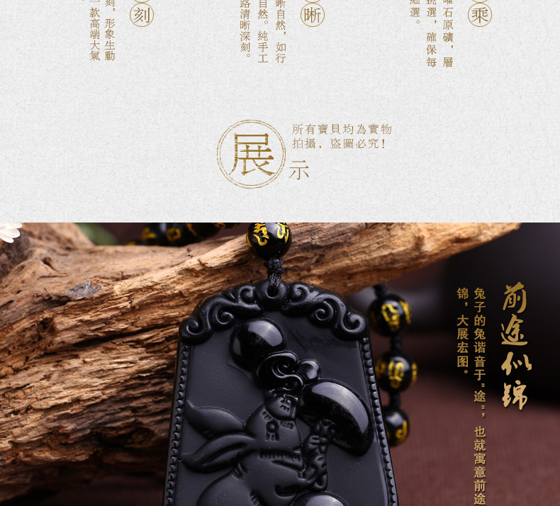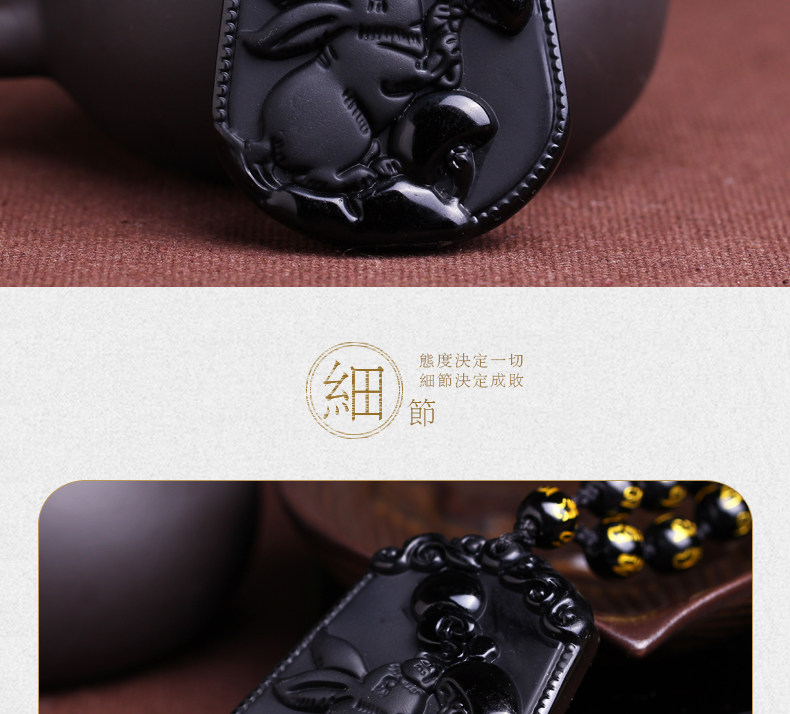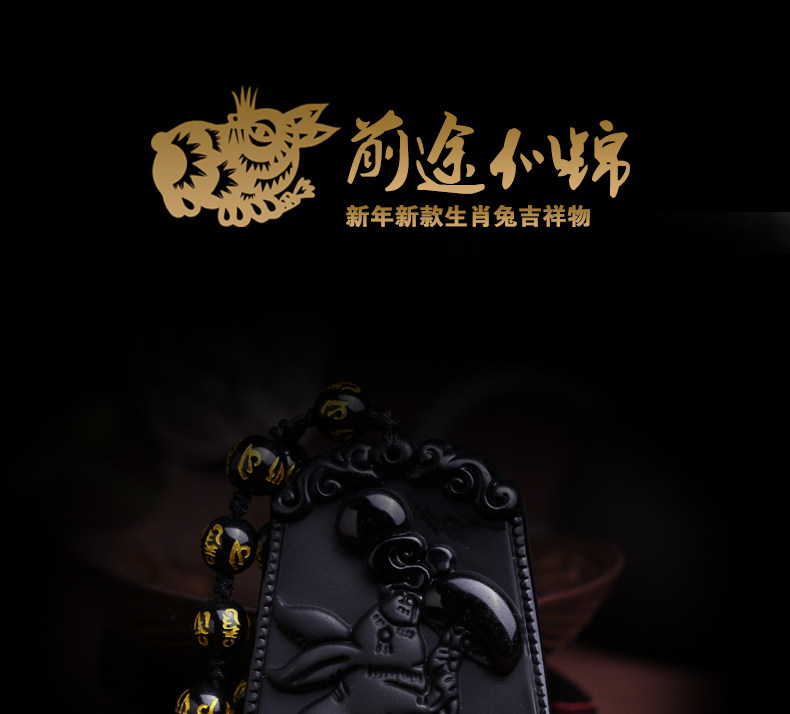 开光乌金黑曜石吊坠开运十二生肖属兔本命年吉祥保平安男女款项链