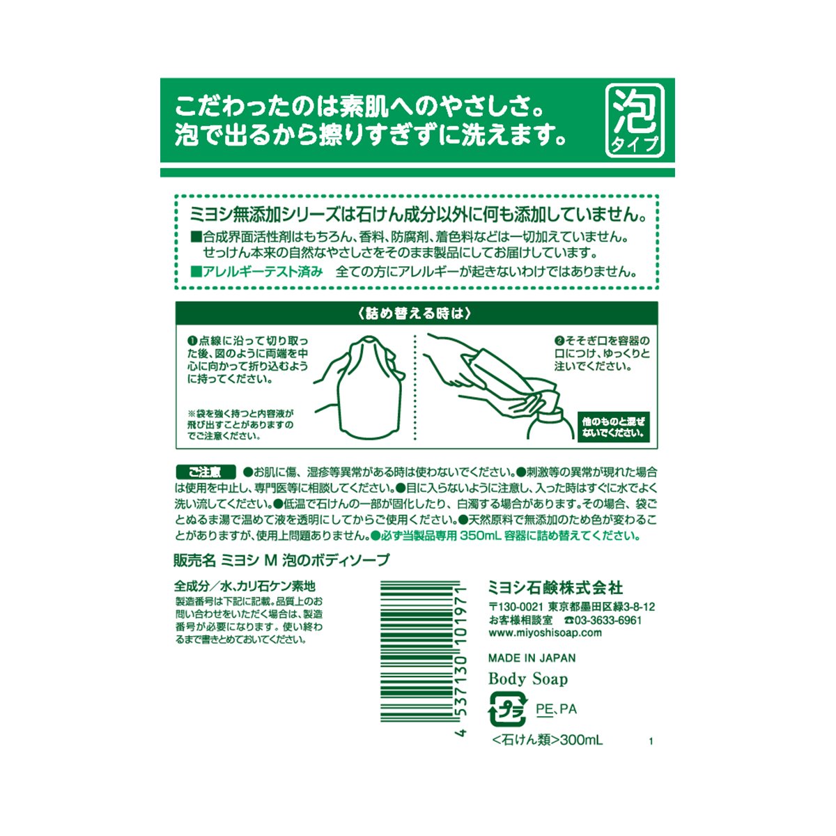 Miyoshi Bubble Body Soap - 300ml - Refill by Miyoshi