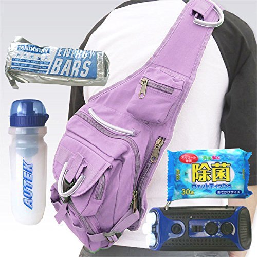 1일분의 비주식,음료수를 넣는다 보틀,태엽 충전식 라디오&라이트,제균웨트(wet) 티슈,바디 백의 세트입니다