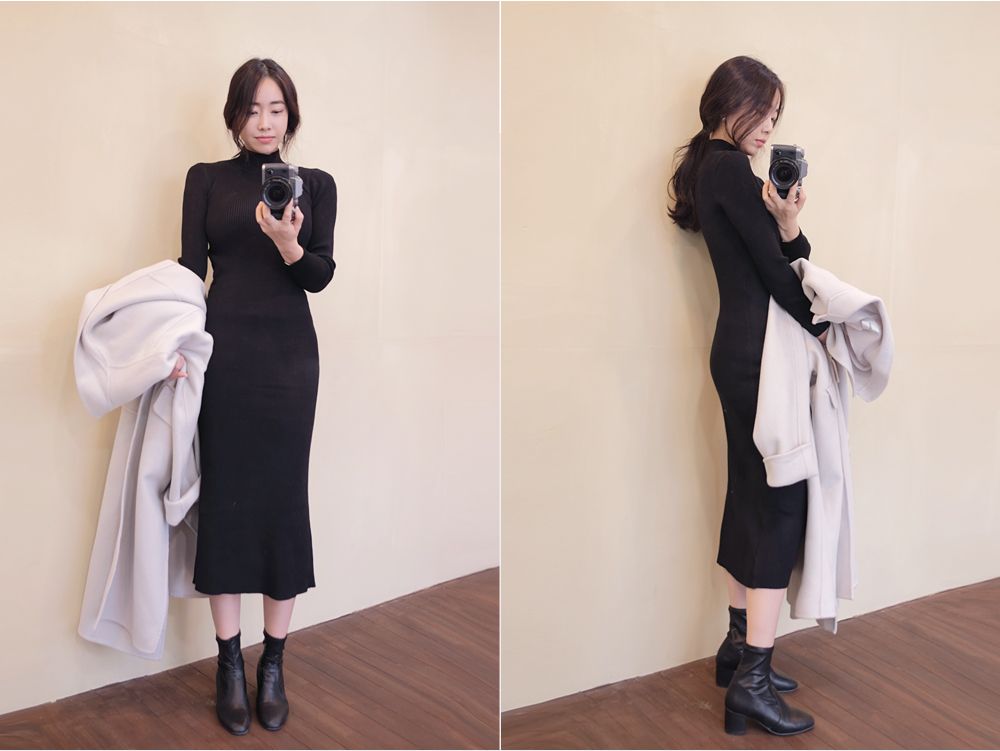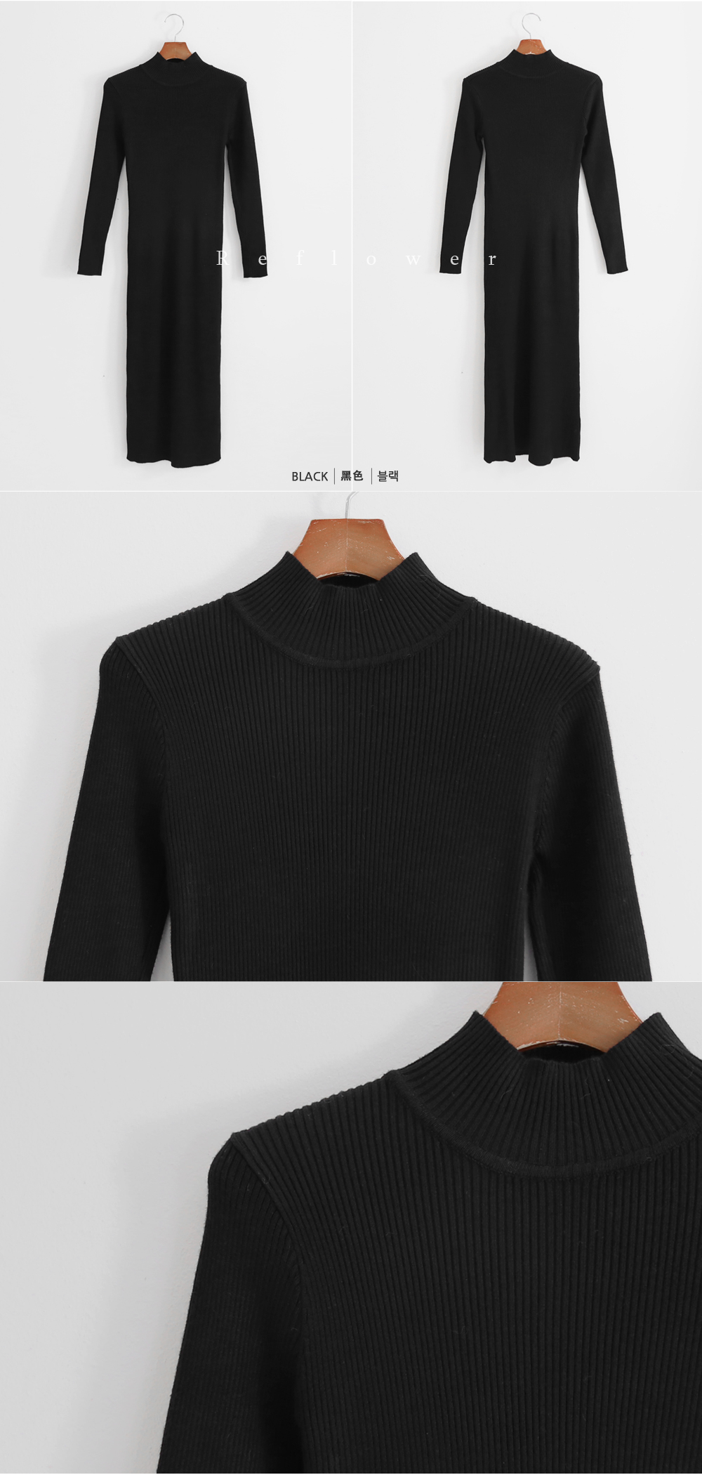 여성스러움을 극대화시켜주는 원피스 소개해드려요! 적당한 두께감에 탁월한 신축성으로 핏되지만 불편함없이 착용되실거에요. 골지짜임의 니트소재로 보온성도 느껴지구요, 군더더기 없이 깔끔한 디자인으로 분위기있게 입어진답니다:) 슬림하게 입어져 다양한 아우터안에 이너로 입기 완전 좋구요!! 페미닌한 스타일링에 좋은 원피스에요♥ COLOR 블랙(BLACK)*모델착용 SIZE ONE SIZE MATERIAL (혼용률) 아크릴 95%, 스판 5% 두께 : 보통 , 비침 : 없음 신축 : 있음 , 안감 : 없음 세탁법 : 가벼운 손세탁(드라이클리닝 권장) Detail View Size View COLOR 블랙(BLACK)*모델착용