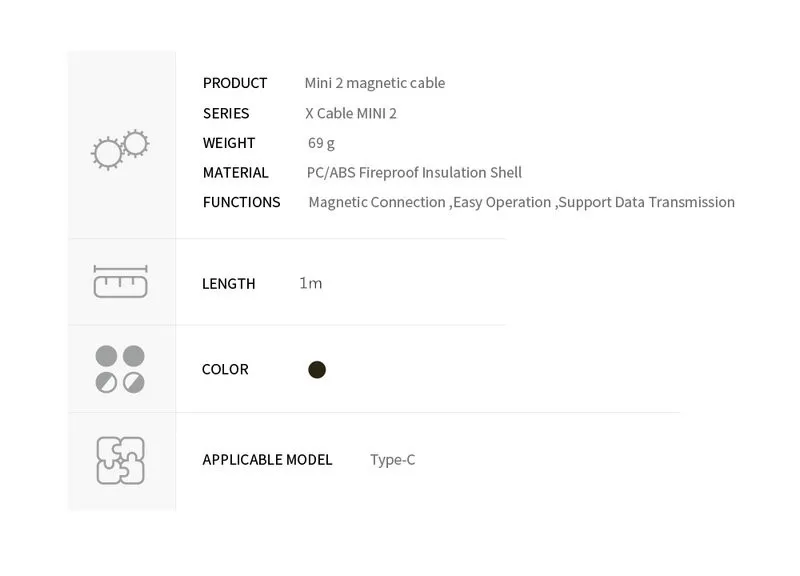 Model Name:WSKEN mini 2 Black Type-C Magnetic Metal USB Cable