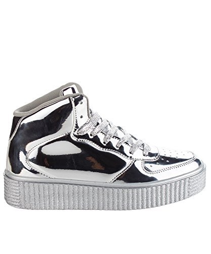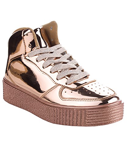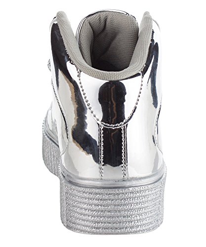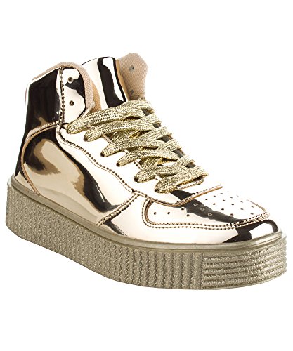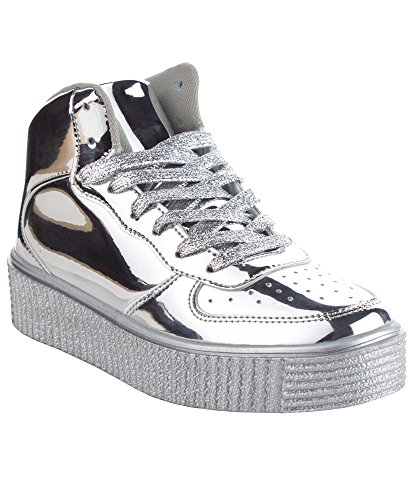 Cape Robbin Women's Fashion Creepers Patent Leather Glitter Laces Flatform Lace Up Platform Hig...