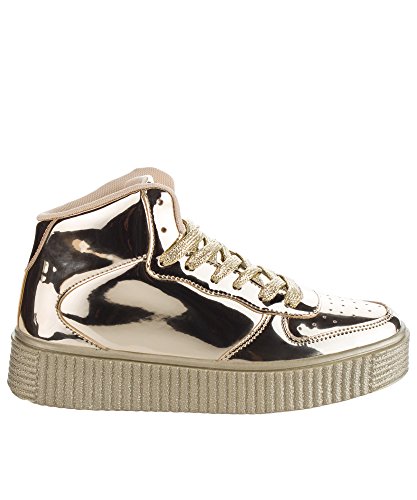 Product DescriptionThese high top creeper? sneakers? feature a round toe silhouette, perforated detail, chunky flatform sole, and lace up fastening. Finished with a cushioned insole and padded collar/tongue for all day comfort.0