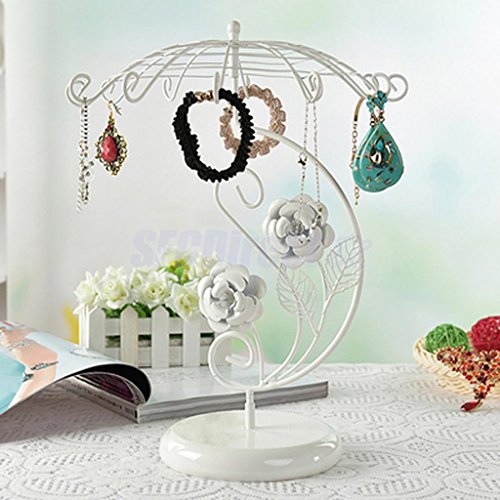 -. Feature : Description: Vintage style unbrella shape jewelry holder, great to organize all your earrings, bracelets and necklaces. The earrings display stands are great for individual, retail store or craft show displays. Specification: Items condition: 100% Brand New and High Quality Material: Alloy Color: Black, white(optional) / Size Chart: Umbrella diameter: Approx.27cm/10.63inch Total height: Approx.32cm/12.60inch Base plate diameter: Approx.14cm/5.51inch Package includes: 1 x Jewelry display holder / item will be shipped from China, need 20-30 days to deliver