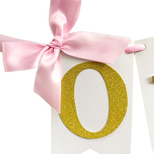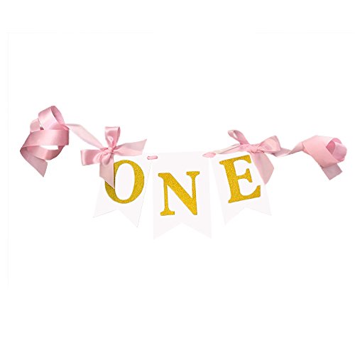 Pink Glitter Gold ONE Banner Baby Highchair Bunting Banner First Birthday Party Decoration For Girl/Boy (Pink)