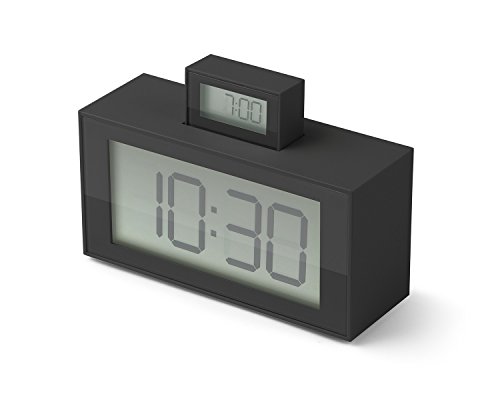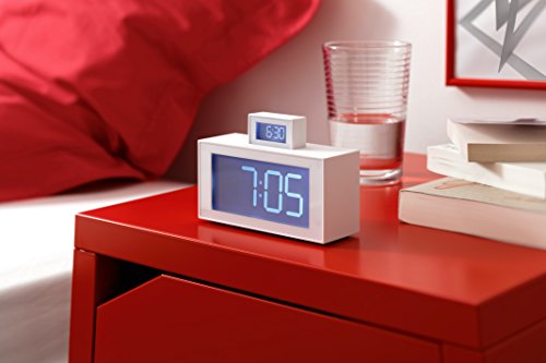 2 LCD alarm clock with electroluminous display. Touch sensor snooze - light. Pop-up alarm feature. 2 AAA batteries (included). Design by Hector Serrano