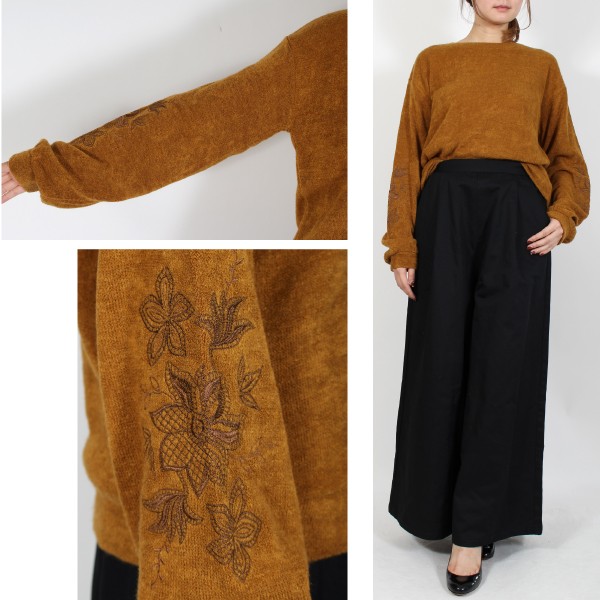 A/N/T天竺の袖刺繍入り ボリュームスリーブ プルオーバー☆