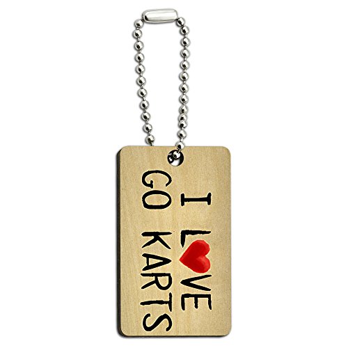 (Graphics and More)/Accessories/Wallets, Money Key Organizers/DIRECT FROM USA/I Love Go Karts Written on Paper Wood Wooden Rectangle Key Chain