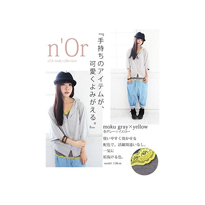 N'Or (노 R) nOr 레이스부 배색 캐미 탱크 레이디스 캐미 탱크 탑 노슬리브 레이스 프리 사이즈 목 그레이×옐로우(3)