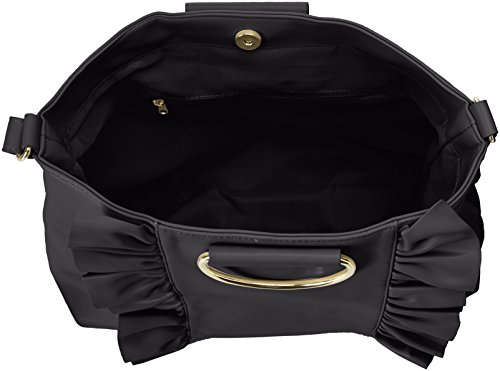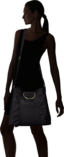 -. Feature : Adjustable cross body strap / Metal handles / Ruffle detail / Back wall zip compartment / Interior cell phone pocket