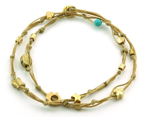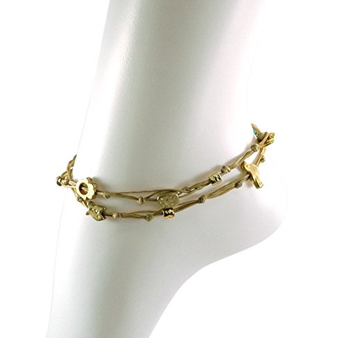 -. Binding : Jewelry -. Brand : MIZZE Made for Luck Jewelry -. Department : womens -. Feature : 10.5" DOUBLE WRAP ANKLET for COMFORTABLE FIT: The double wrapped anklet is 21" in total length - so size 10.5" and wraps twice around the ankle. / CAMEL HANDMADE WAX WIRE TIES ANKLET - The ties anklet is made with Camel wax cotton (durable) and various charms. / GOOD LUCK and PROTECTION CHARMS ANKLET - The charms include the Hamsa Hand for protection, Fish charm, Heart charm and Star. / QUALITY MATTE GOLD PLATED CHARMS - The charms have a quality matte gold finish plating. / **100% FULL MONEY BACK GUARANTEE - We stand behind our brand and provide a 100% full Money Back Guarantee. If you are unhappy with your Charms Anklet, for any reason please contact us! -. Label : MIZZE Made for Luck Jewelry -. Manufacturer : MIZZE Made for Luck Jewelry -. Model : MZ6009CAG -. MPN : MZ6009CAG -. PartNumber : MZ6009CAG -. ProductGroup : Jewelry -. ProductTypeName : FASHIONNECKLACEBRACELETANKLET -. Publisher : MIZZE Made for Luck Jewelry -. Studio : MIZZE Made for Luck Jewelry -. Title : Camel & Gold Double Wrap Charm Anklet for Good Luck & Protection - 10.5"
