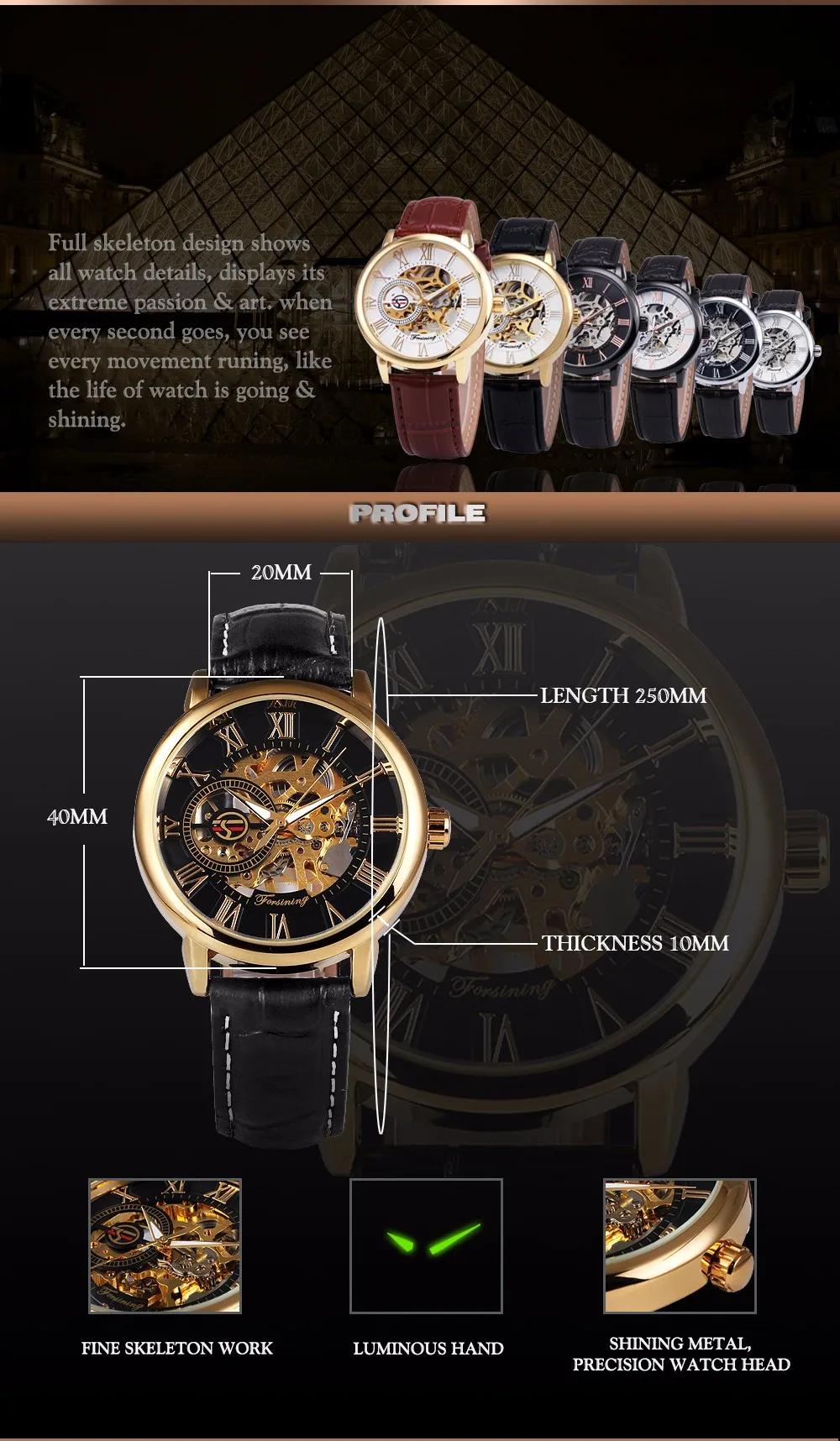 Manual Instruction:Mechanical watch needs shaking & winding to start(NO OVER WINDING!).