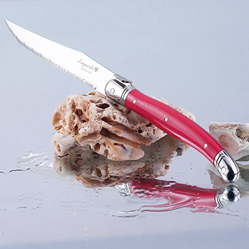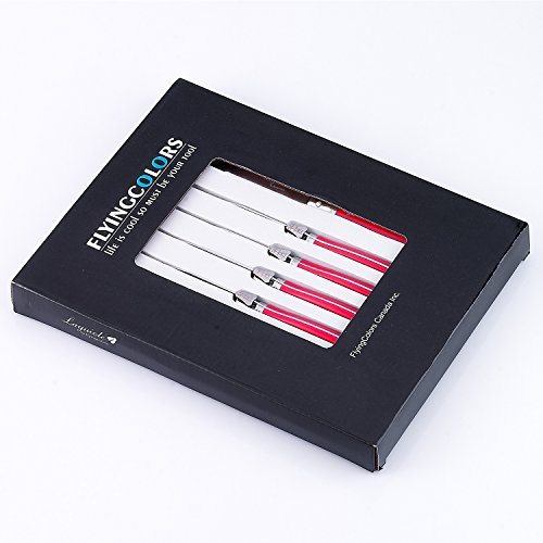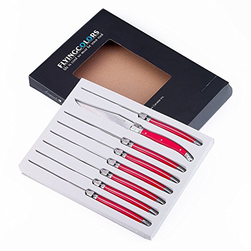 FLYINGCOLORS LAGUIOLE STYLE STEAK KNIFE SET. STAINLESS STEEL, RED HANDLES,8 PIECES