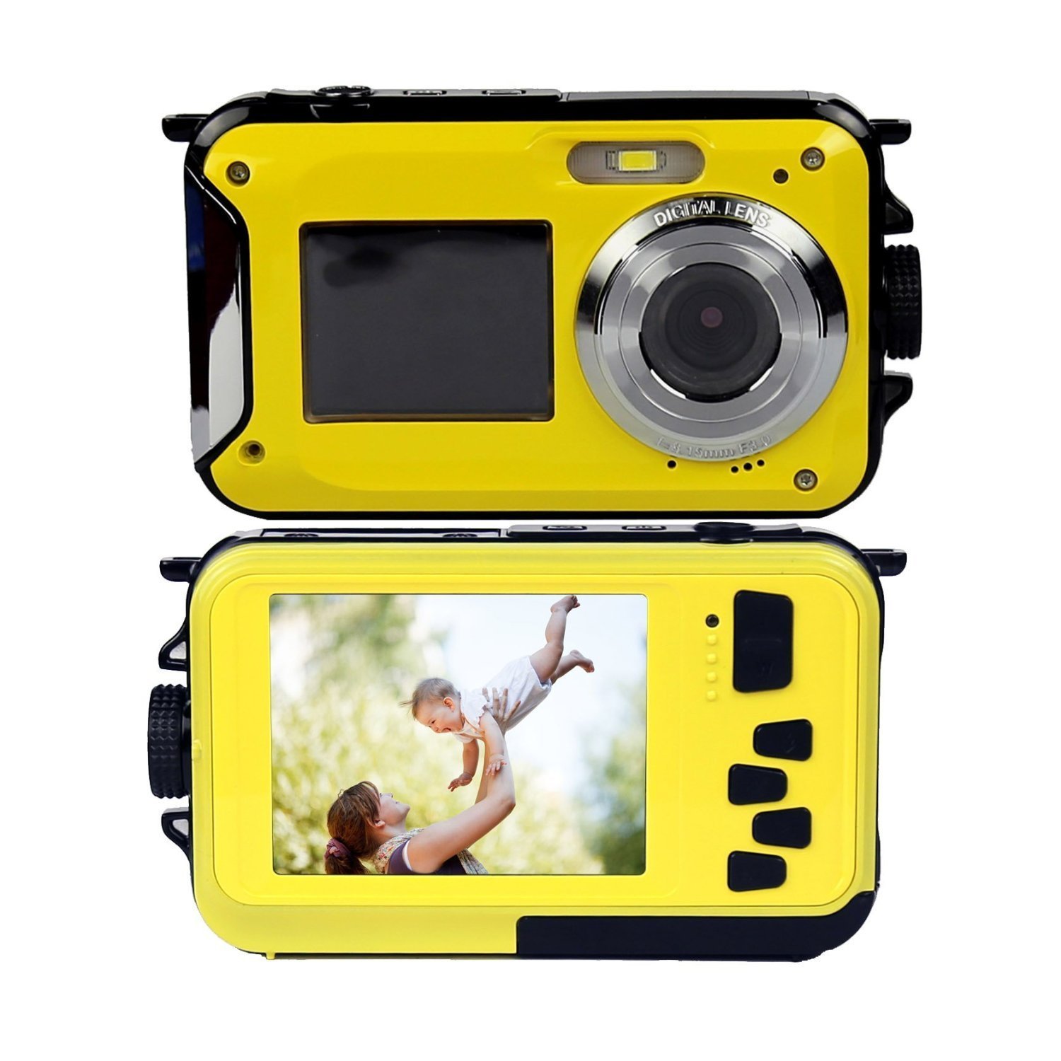 Waterproof digital camera with video; water resistant to 10 feet deep.
