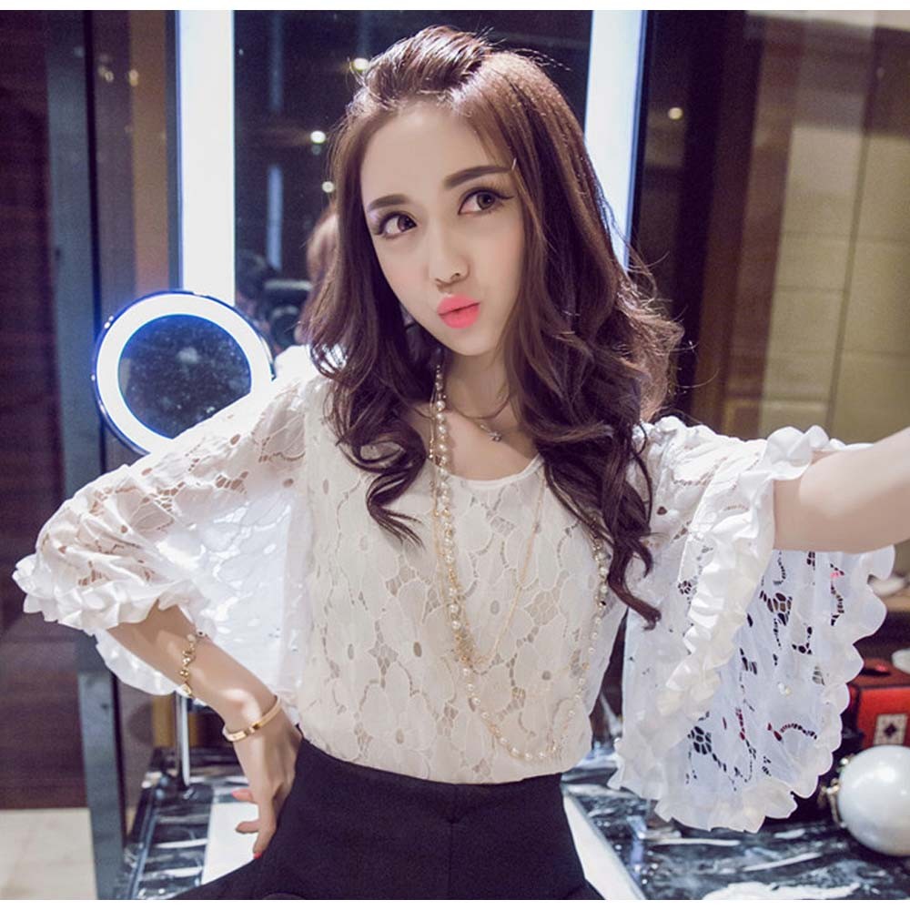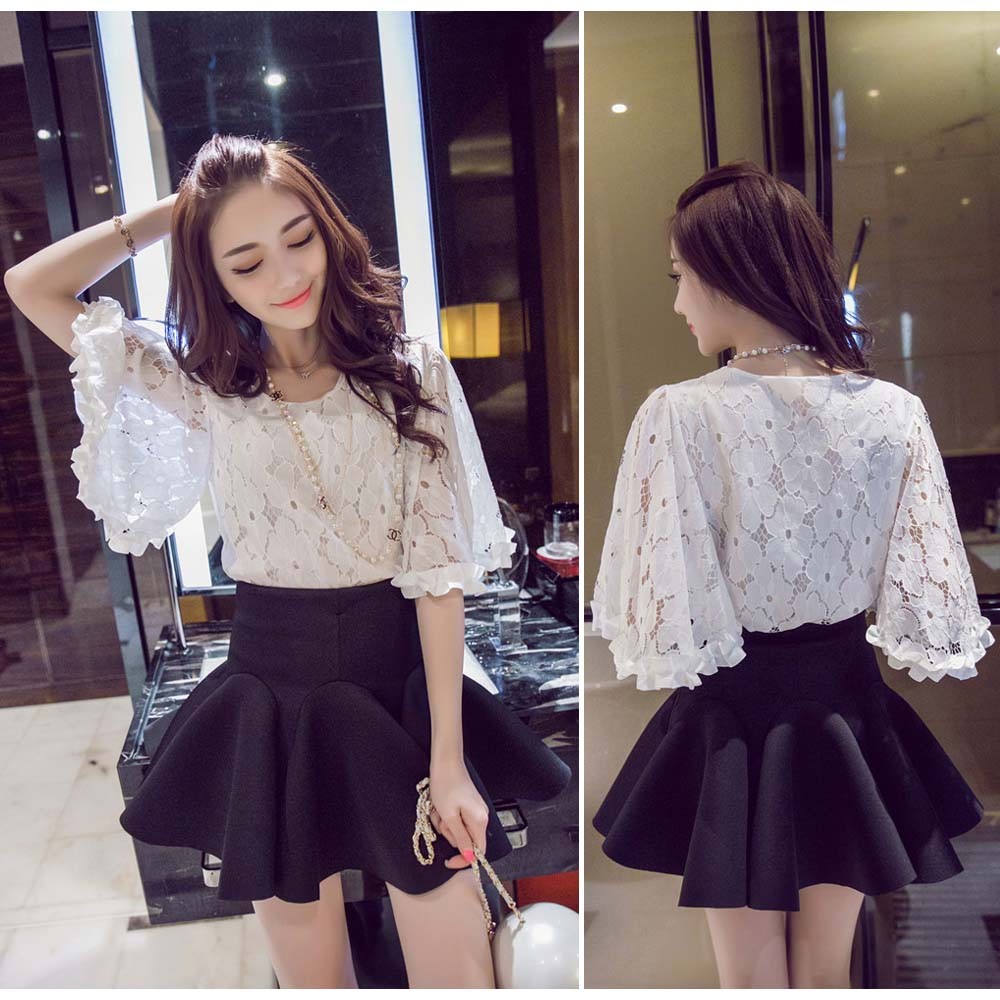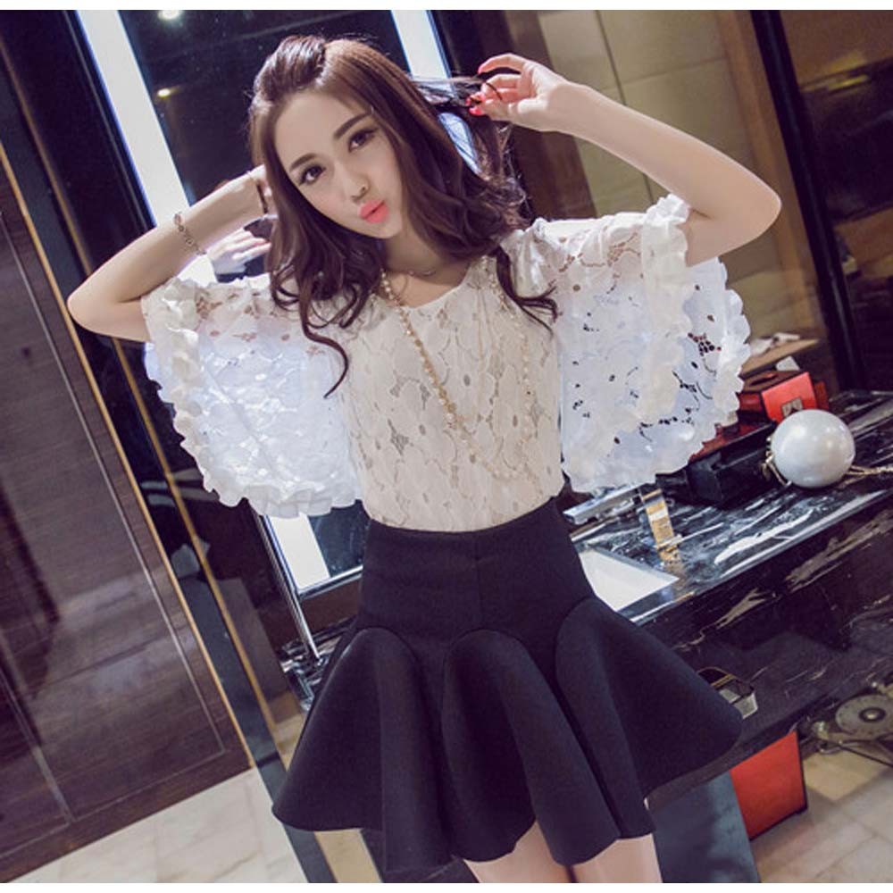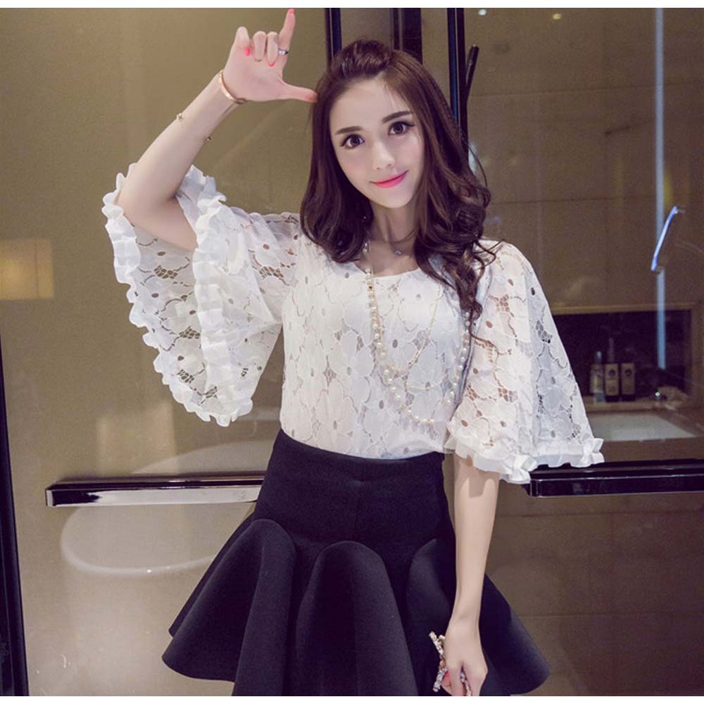 ふんわりシルエット、動くたびに揺れるフレアスリーブ、気になる二の腕をカバーして清楚なスタイル