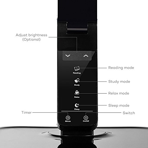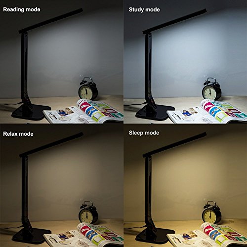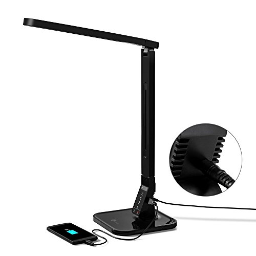 TaoTronics Dimmable Rotatable LED Desk Lamp(Black, 4 Lighting Modes, 5-Level Dimmer, Touch-Sensitive Control Panel, 1-Hour Auto Timer, 5V/2A USB Charging Port)