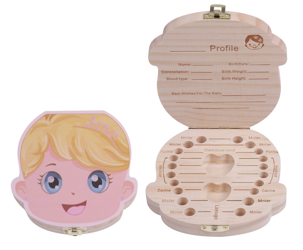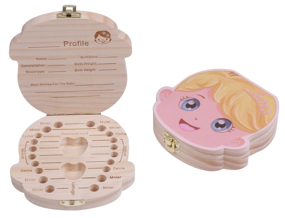 かわいい ガール フェイス柄 木製 乳歯 ケース 出産 お祝い お子様 の成長 記録 保存 カラー
