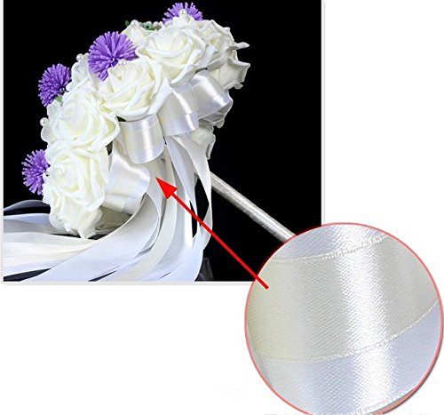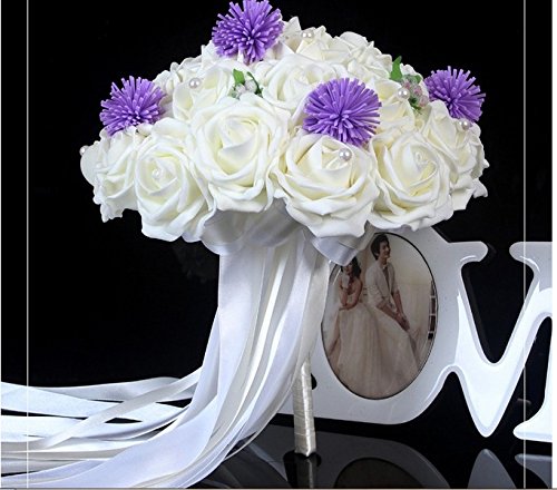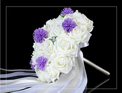- Feature : Bridal Bouquet made with white roses, purple Hibiscus,abs pearls and beautiful Ribbon / 30pcs Bridal Bouquet 30cm W 28cm H / Silk flowers won't wilt in the heat or freeze in the cold. The consummate choice for all weather conditions / You can use flowers that may normally be out of season and there are also a wide variety of colors, above and beyond the limitations of mother nature. / The silk flowers available to us today are so glamorous and realistic you will be amazed. We think that many of the flowers are even more vibrant and beautiful that their fresh counterparts.