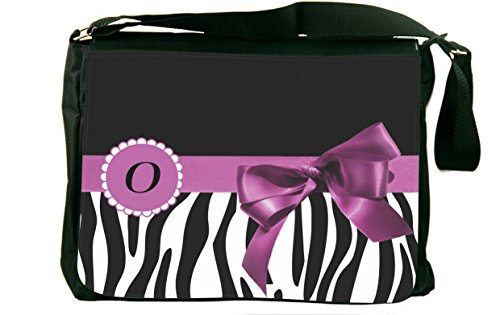 Studio : Rikki Knight LLC Publisher : Rikki Knight LLC Binding : Office Product Product Description Whether from home to the office, on a business trip or to school, the Letter " O " Violet Zebra Bow Monogram laptop bag notebook bag messenger bag school bag keeps you comfortable and your cargo safe and sound - this bag features pockets on the outside below the flap for your cellphone, pens, iPod, notebook etc. And also a zippered compartment on the inside, with plenty of space to store your textbooks, folders, files, etc. And up to a 14 inch laptop (laptop sleeve sold separately) - the vibrant image on the front is professionally printed and will not fade or peel with time and this bag will surely be an eye catcher wherever you go with it. Disclaimer: all images are printed directly into the material - the Texture of the image will always be a flat surface. Any images that appears to be 3D, textured, or glittery are flat printed images. 0