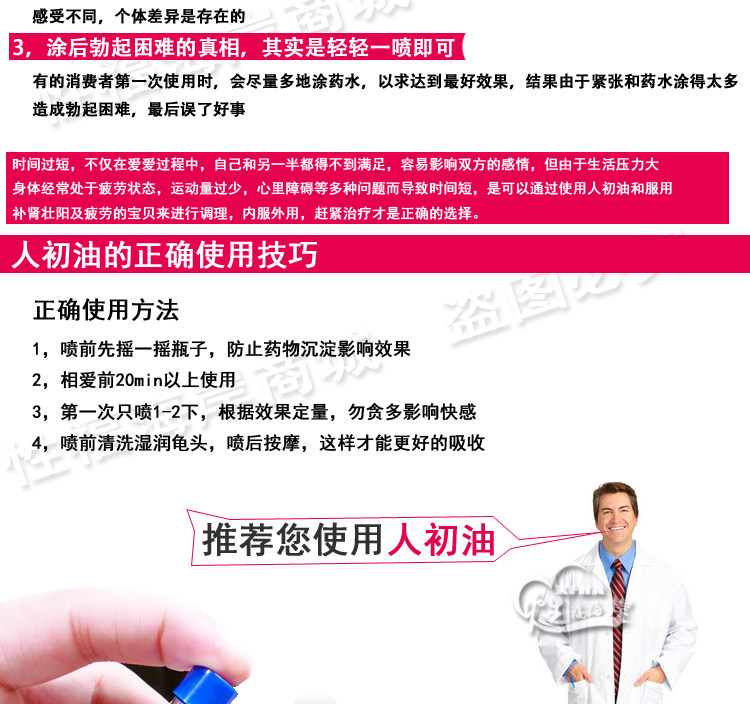 People early oil aerosol penetration through the skin, the use of active factor, accelerate the absorption of skin and mucous membranes, and to adjust the central peripheral nervous system, inhibition of excitement, excitement and stimulate the central nervous system, so that the spine reflex increase resistance to stress, erectile play a counter-suppression role, to demonstrate, the extension? ditch which Kang copy?