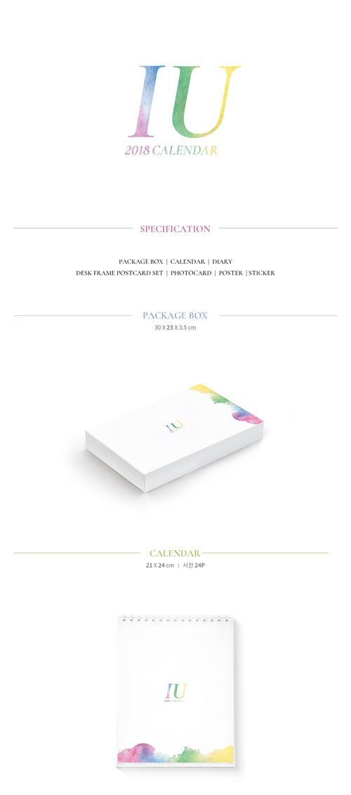 Korean Star Collectible IU 2018 Season Greeting (Desk Calendar + Diary + Desktop Postcard Frame + Photo Card + Poster + Sticker)