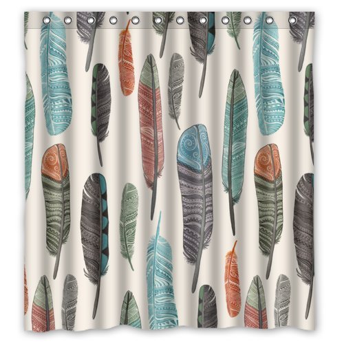 BMALL Colorful Aztec Feather Art Bathroom Shower Curtain with Rings Waterproof Curtain 72 x 84 Inch Bathroom Set with Hooks-Home Decor Chemistry Themed
