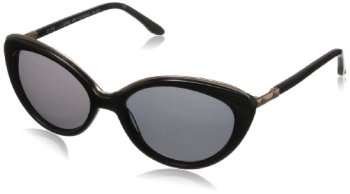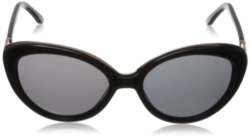 Cat-eye sunglasses with prescription-ready lenses and textured metallic plates at temples